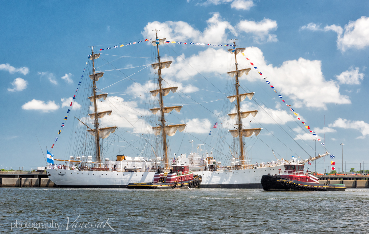 Before I move on to other things, here are a few more images of some of the activity i Charleston Harbor on the day of the Parade of Sail, Thursday May 18th at the start of the Tall Ship Charleston Festival 2017. The enormous container ship gave our Captain a few anxious moments as we had to wait for another ship to pass before we could come about and tack out of the way. The wake it created was also pretty exciting.